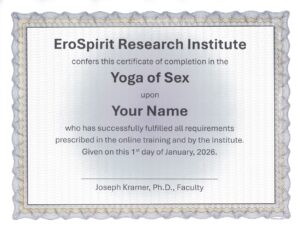 The completion of the Yoga of Sex online training may take two months or may take twelve months. Learn at your own speed. Many individuals, after completing the Yoga of Sex, still want access to the course for personal or professional reference. Others don’t complete the training within the one-year time frame. Access to the Yoga of Sex can be extended for $99 per year. Contact Joseph for more Yoga of Sex.